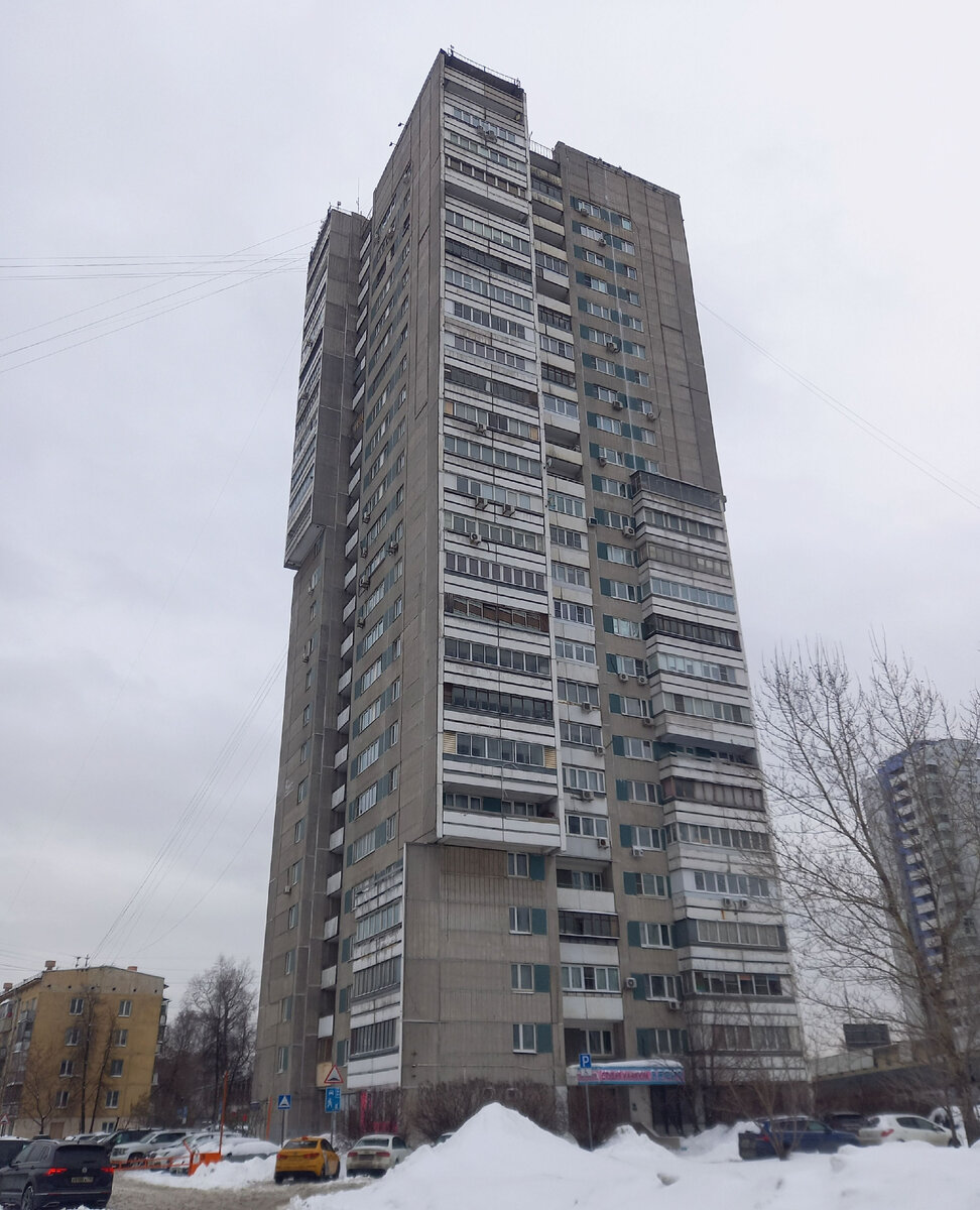 Интересно, что здесь, в отличие от Хорошево-Мневников, за последние десятилетия так и не было построено новых многоэтажных зданий, сопоставимых по высоте с башней И-521А. Даже новые жилые комплексы у метро «Улица Академика Янгеля» высотой «всего лишь» в 23 этажа. А расположенная прямо напротив высотки 15-этажка (на фото ниже) так и вовсе выглядит совсем низенькой.