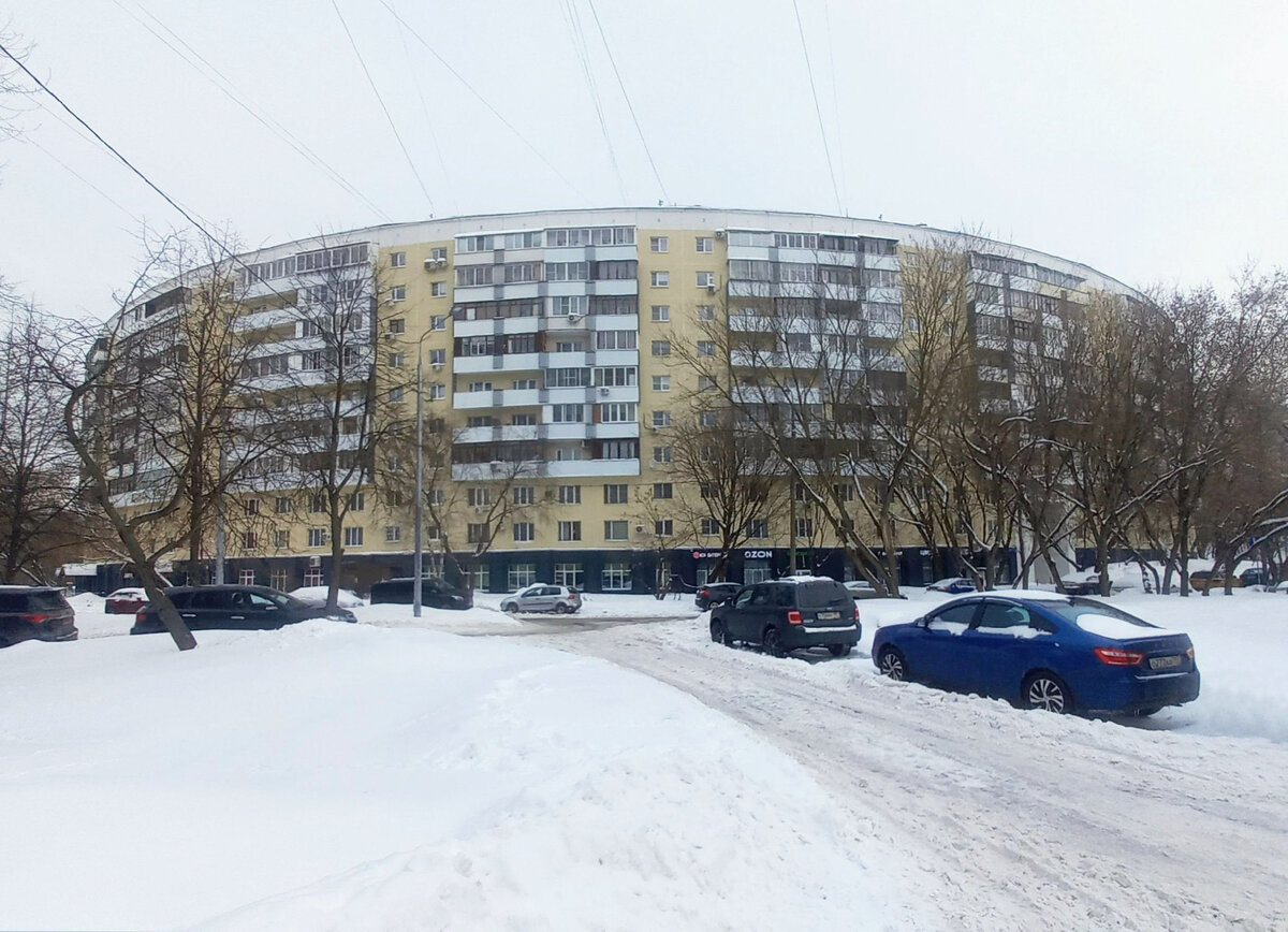 Начнем мы нашу экскурсию со здания на улице Довженко. Хронологически оно было построено вторым, спустя целых пять лет после появления круглого дома на Нежинской. Хотя серия жилых домов здесь та же самая – I-515/9 – едва ли не самая популярная в советской Москве в 60-е и 70-е годы. Эти девятиэтажные панельные здания сформировали облик многих столичных районов того времени, придя на замену [а точнее, дополнив] хрущевкам, строительство которых было окончательно прекращено в 1974 году.