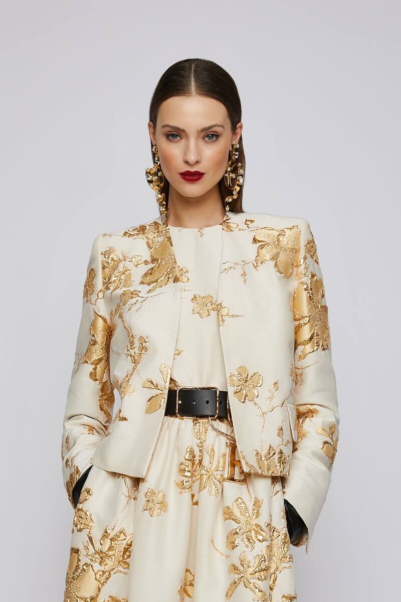 Год назад мы уже делали подобный обзор о трендах 2023-го года, он оказался крайне полезным для наших читателей и вызвал высокий интерес, поэтому мы решили повторить его снова и в этом году. Начало года – это идеальное время для знакомства с трендами будущего года и проверки своего гардероба на "актуальность". В этой статье мы расскажем про самые актуальные фасоны, цвета и сочетания нового года. Металлик Тренд на металлик так высоко оценили модницы в 2023-м году, что в 2024-м многие бренды решили поддержать его снова. Дизайнеры на Неделе моды в Нью-Йорке предложили использовать золото, серебро и бронзу не только в коллекции осень-зима, но и в коллекциях весна-лето. Бренды ESCADA и GIUSEPPE ZANOTTI предлагают брюки, верхнюю одежду и туфли с яркими акцентами "металлик". Цветочные мотивы Цветочные мотивы в одежде будут популярны этой весной. Они будут особенно актуальны, так как весна и лето вдохновляют дизайнеров на сочетание ярких цветов и узоров. Цветочные платья, блузы, брюки и юбки