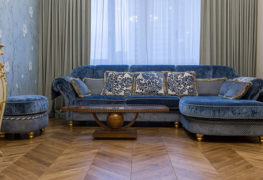 В гостиной был паркет с рисунком “ёлочка”, светло-коричневый цвет которого напоминал ей о теплых летних днях. Годичные кольца на паркете были отчетливо видны, придавая ему особый шарм и неповторимость.
