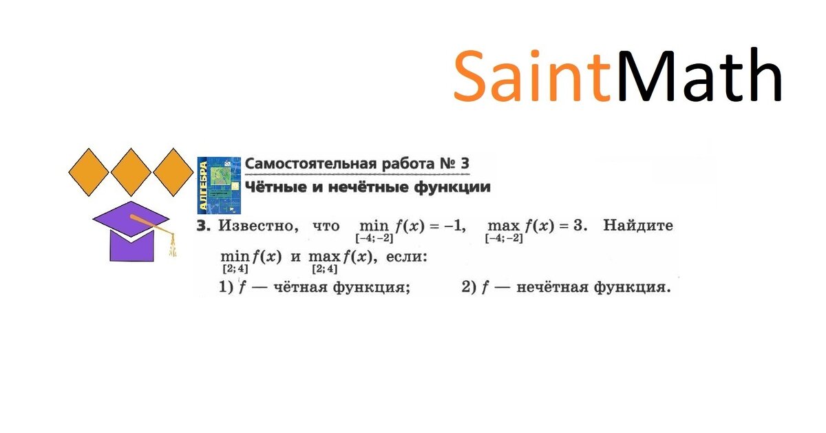 Алгебра 9 класс. Углубленный уровень. Мерзляк. Самостоятельная работа 3. Вариант 1. Задание 3. ЧЕТНЫЕ И НЕЧЕТНЫЕ ФУНКЦИИ. 3. Известно, что minf(x)=-1 на [-4;-2], maxf(x)=3 на [-4;-2]. Найдите minf(x) на [2;4], maxf(x) на [2;4], если 1) f-четная функция ; 2) f-нечетная функция ❤Обратите внимание, что видео быстрее выходят на RUTUBE!❤ Для дальнейшего развития канала и публикаций бесплатного контента ставьте лайк и подписывайтесь ❤️ Видео решение Rutube Видео ДЗЕН