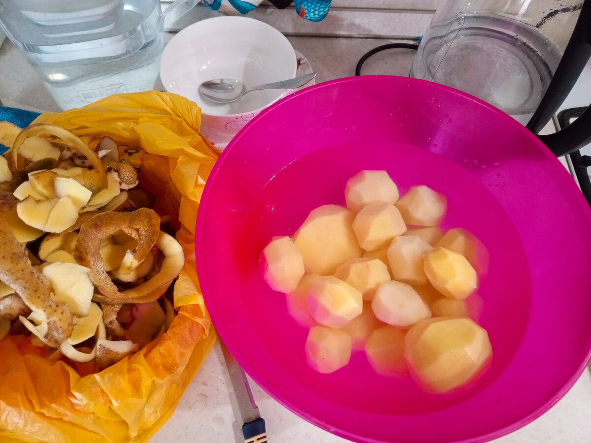 В детстве, часто гостил у своей родной тёти. У них было трое детей и всегда было весело. Один раз в неделю дядя Миша жарил картошку по своему фирменному рецепту. Ни кто не знал, как он это делает. Даже жену не посвящал в тонкости этого дела. Однажды, я вызвался ему помочь, почистить лук и картошку.