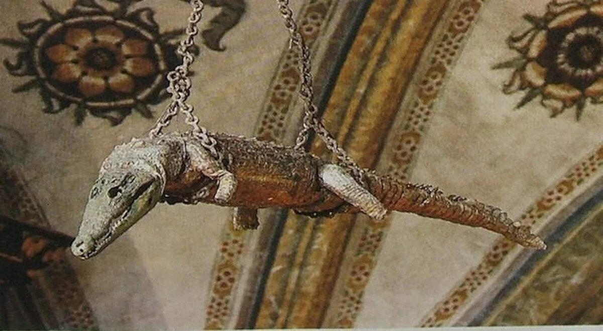 В итальянском регионе Ломбардия, в церкви Сантуарио делла Беата Верджине Мария делле Грацие, можно увидеть необычную достопримечательность – к подвесу церковного потолка прикреплено мумифицированное тело крокодила, который уже пребывает там около пяти веков. Возникновение этого загадочного явления до сих пор остается тайной, однако находка прямо связана с религиозной символикой, указывает издание Oddity Central.