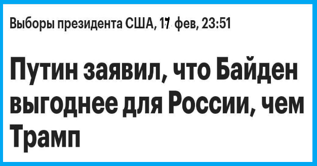 Дорогие мои друзья и соратники, на днях наш многоуважаемый президент, мило улыбаясь, сказал, что, пожалуй, как президент во главе Америки, Байден будет лучшим вариантом для нашей страны. Вот так и сказал - мол, и политик опытный, и формация у него старая... и даже памперсы не так уж часто нашему драгоценному Дж. Байдену приходится менять Но это весьма комплиментарное (в отношении действующего президента Америки) высказывание Владимира Владимировича почему-то весьма возбудило все политические круги США, а также стран, для которых дрожание левой ноздри гегемона есть знак гнева Божиего. Издание GB News публикует: шутка Путина про Байдена не понравилась Западу — это было жестко Отреагировал и так называемый «офис президента» «Это действительно подло со стороны Путина давать положительную оценку президенту Байдену. Хочу привести цитату:» Для России на посту президента США Байден лучше, чем Трамп «. Это слова абсолютно недопустимы, они ставят под сомнение политику администрации президента в