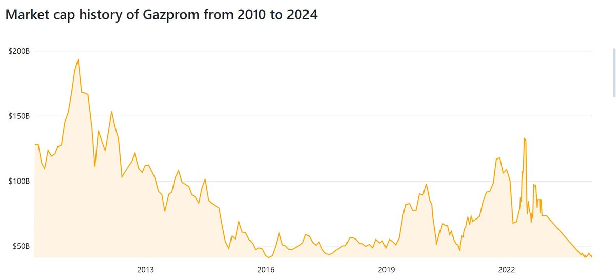 Спойлер: $GAZP и ВТБ одни из тех компаний, капитализация которых непрерывно снижается с течением времени. ПАРИЖ, 10 июня 2008 года - РИА Новости. Капитализация "Газпрома" в течение семи-восьми лет достигнет уровня в 1 триллион долларов, против 360 миллиардов в настоящее время, сообщает агентство Франс Пресс со ссылкой на сделанное во вторник заявление председателя правления ОАО "Газпром" Алексея Миллера в ходе проходящего во французском Довиле Европейского делового конгресса. Рыночная капитализация ПАО «Газпром» на конец 2022 года составила 3,9 трлн руб., что соответствует 54,8 млрд долл. США. Немного истории Компания Газпром была основана в 1989 году в Советском Союзе. В начале своей истории она была названа Государственный комитет Советского Союза по геологии и использованию недр (Госкомуголь), затем в 1989 году ее переименовали в Газпром. С момента своего образования и до сегодняшнего дня Газпром стал крупнейшей компанией в России и одним из ведущих поставщиков природного га