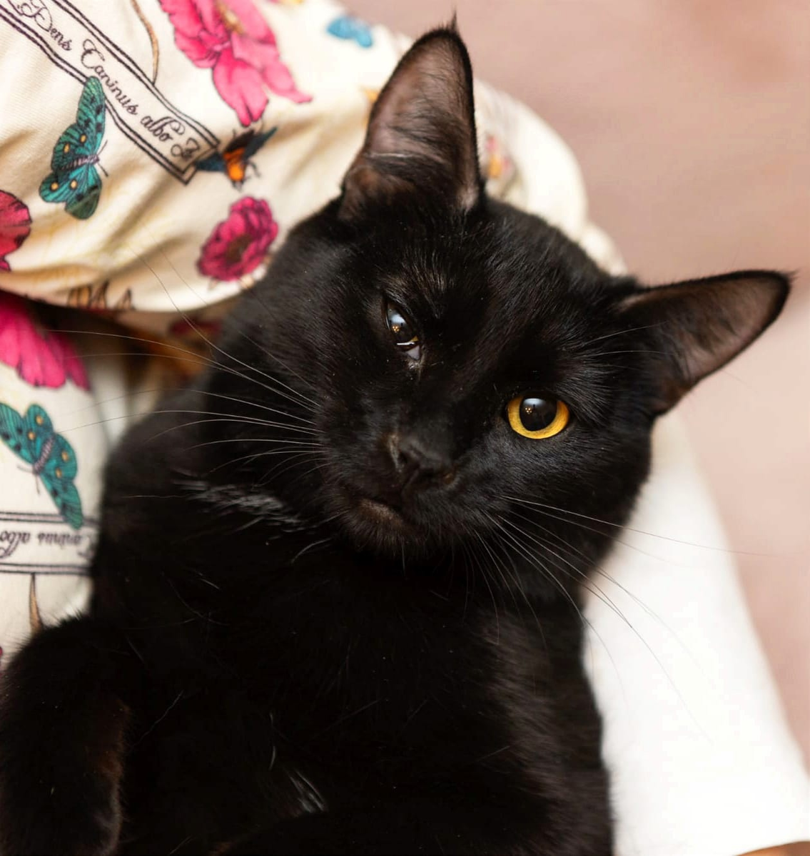 Черничка очень ласковая и очень скромная девочка. Сейчас ей примерно 8 месяцев. Лотком и когтеточкой владеет отлично. Здорова, стерилизована. Она не полностью чёрная, у нее есть изюминка. На правой щёчке Чернички пробивается белое пятнышко – маленькая белая мушка, которая придает ей необыкновенную трогательность.
