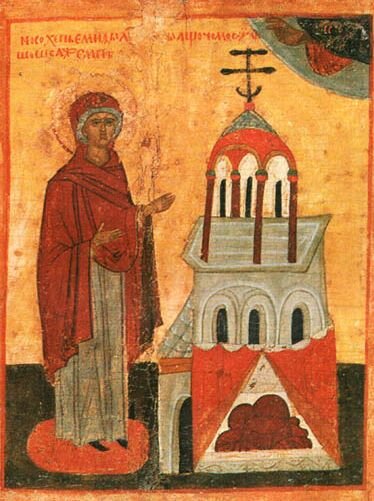 Несколько слов нужно, конечно, сказать и о самой Евфросинье, жившей в XIII веке. В миру Евфросинью звали Феодулией – и это, безусловно, княжеское имя: ее родителями был Михаил Черниговский, князь, замученный в Орде и дочь Романа Мстиславича Галицкого. Феодулию ждала обычная судьба княжеской дочери – династический брак. Был выбран и будущий муж: брат Александра Невского, Федор Ярославич, но увы – в 1233 году в тринадцатилетнем возрасте мальчик, не став мужем, умер прямо незадолго перед свадьбой (предание говорит, прям вот на свадебном пиру, но это, судя по всему, не так). А Феодулия приняла в Суздале постриг в Ризоположенском монастыре, устав которого позволял брать в сестры именно девиц и быстро стала его настоятельницей. Есть красивое предание, как матушка Евфросинья спасла обитель от разорения татарами: