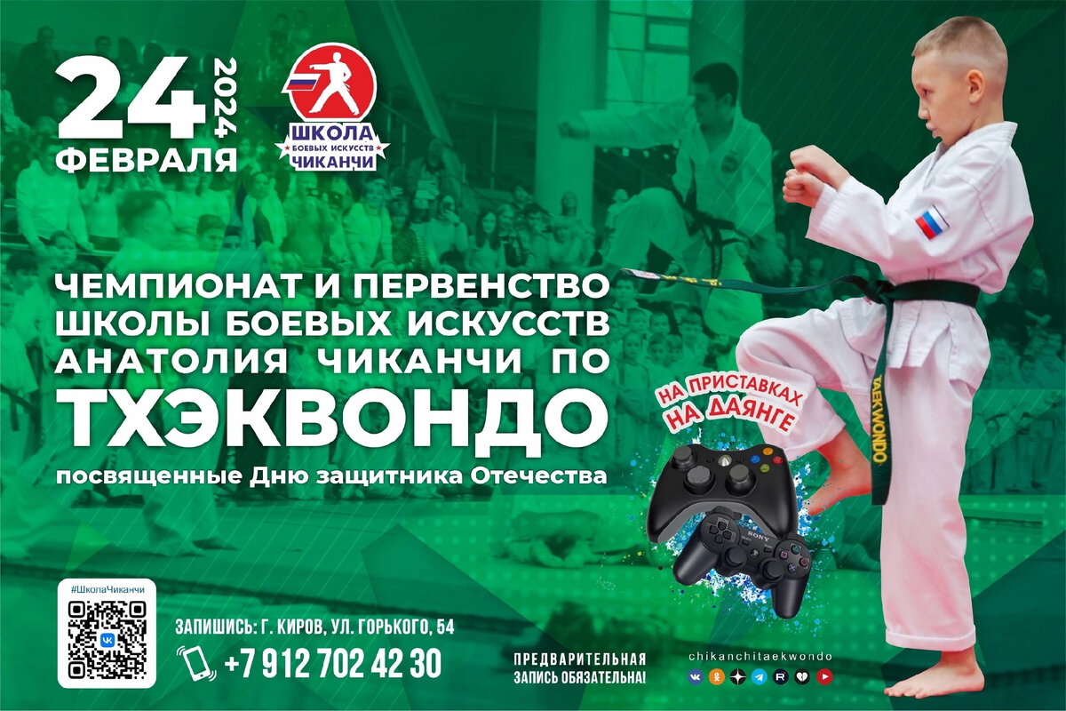 24 февраля в Школе боевых искусств Анатолия Чиканчи пройдут чемпионат и первенство по тхэквондо, посвященные Дню защитника Отечества! Это будет фиджитал-турнир, когда спортсмены сначала посоревнуются на компьютерном симуляторе – в виртуальных спаррингах, а затем выйдут уже на настоящую площадку бороться за медали в классических дисциплинах. Формат турнира станет командным, «маленькие» будут учиться дружить в спорте, поддерживать «больших» и коллективно преодолевать трудности борьбы. Всех ребят ждут памятные медали и подарки. Возраст участников с 3-х лет. Заявки принимаются до 21 февраля через тренера или по телефону: +79127024230. Жмите «Лайк» и подписывайтесь на наш канал.