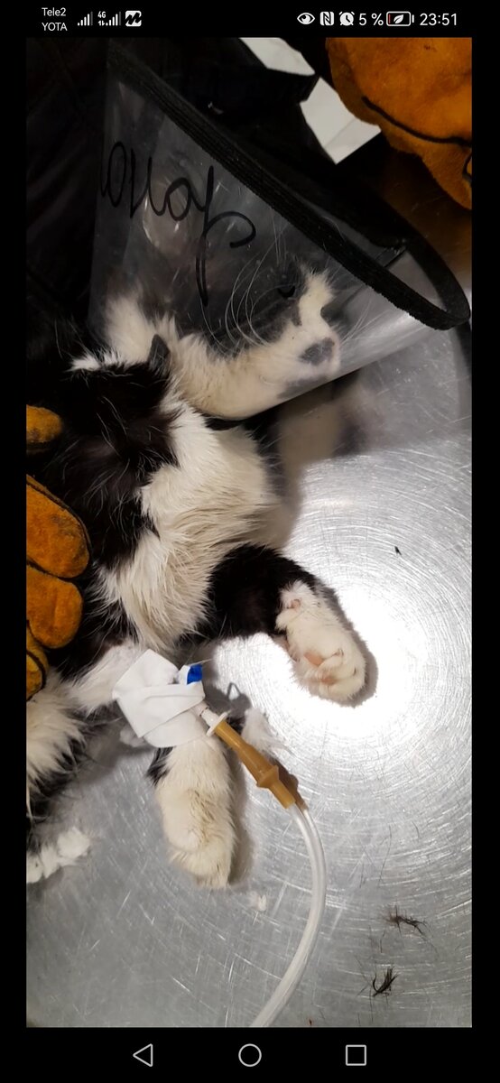 Кота подобрала добрая женщина 2 дня назад, принесла домой и что бы дать ему немного сориентировать - отпустила в комнате. Кот в гною и крови, в сильнейшем шоке. Повторно уже дома его удалось пойматт только к вчерашней ночи. Судя по травмам - укус собаки, как он выживал несколько дней на улице вообще не понятно.. Многое добавить не могу - Дзен такое не любит... У кота о*т*ор*вана часть кожи и мышц на спине, ра*зо*рван с*ф*ин*ктр, все дико воспалено, все опухшее с сочащимися выделениями г*н*оя. Запах непередаваемый. Вчера ночью кота отвезли на срочный ночной прием в клинику "9 жизней", кот в шоке, кидается на руки, шипит (оно и понятно, я не представляю насколько там все болит). Почистили раны насколько это возможно, обезболили и назначили лечение. Чек вышел космический за ночной прием, но зотя бы кот смог немного поспать ночью. Далее утром в вет клинику Ирбис - на дальнейшее лечение и пока 5 дней стационара. После всех осмотров, манипуляций и прочего - предложение от врачей