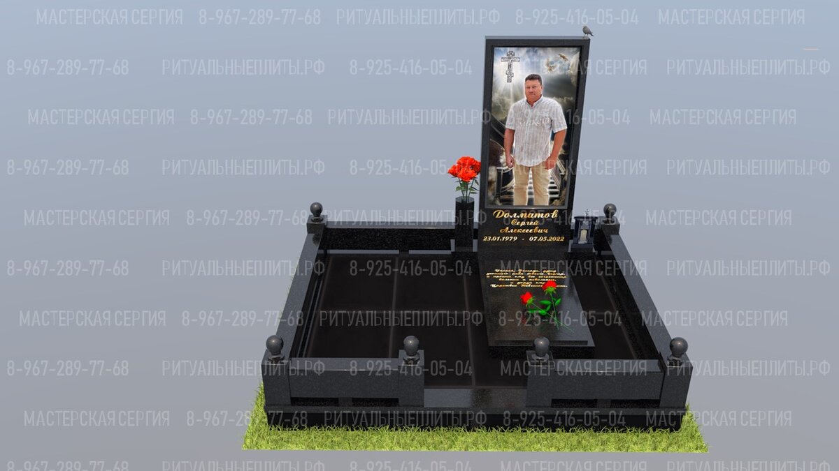 Гранитное сооружение, наполненное глубокой эмоциональной выразительностью, выразит и увековечит все чувства родных и подчеркнет особое уважение и почтение к родному человеку. По желанию мемориальный комплекс можно изготовить в другом цвете, в комбинации нескольких гранитов, с другими моделями и размерами, наша компания предоставляет предварительный электронный макет к каждому заказу, который создает реалистичный, понятный и запоминающийся образ заказчику, помогает ему создать представление о материалах, размерах и характеристиках комплекта памятника или комплекса. Мастерская Сергия предлагает гранитные комплексы на заказ, которые надежно и гармонично обустроят место захоронения родных людей, долговечный материал обеспечит многовековую сохранность и презентабельный вид, композиция может включать и сочетать несколько гранитов, делая комплекс более уникальным и неповторимым в своем роде, делаем установку по Москве, Московской области и ближайших районов Мо, в дальние регионы делаем доставку.