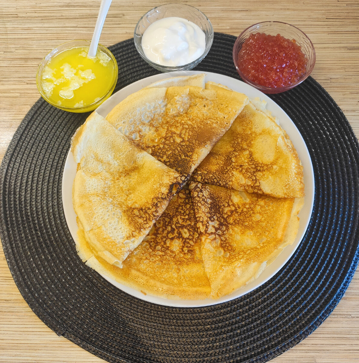В марте целую неделю проходит восточнославянский праздник МАСЛЕНИЦА. У русских традиционно в эту неделю пекутся блины. Рецепты у блинов простые, но каждый вносит в них что-то своё особенное. Есть их можно со сметаной, растопленным сливочным маслом и конечно вкусно с красной икрой. Пойдут также любые сладости как сгущённое молоко, варенья, конфитюры, джемы, мёд. Ингредиенты просты: В кастрюлю разбиваем 2 яйца, добавляем соль, соду и взбиваем венчиком, блендером или толкушкой, далее выливаем туда молоко, перемешиваем. Добавляем муку, перемешиваем до растворения комочков. Разбавляем густоватое тесто водой, добавляем масло в тесто. Разогреваем сковородку, смазываем ее маслом, выливаем половником тесто порционно для одного блина и жарим до золотистой и тёмно-золотистой корочки с каждой стороны. Можно вкус блина при замешивании сделать солёным или сладковатым. Можно и соль, и сахар класть одновременно блины тоже получаться вкусными. Колдуем у сковородки 30 минут с переворачиваниями, жарко