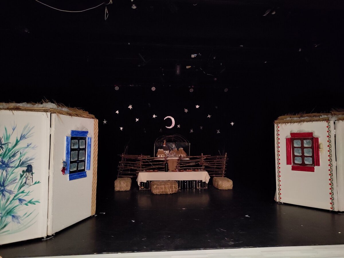 Собственно, и так понятно, что это сказка, а когда ты видишь ее на сцене неординарного театра, то получается еще сказочнее. Театр им.Есенина полюбился мне с первого взгляда, поэтому каждая встреча с ним – это чудо. Несмотря на трудности маленького коллектива, не имеющего собственного помещения, театр превратил эти трудности в плюсы, особенно при создании иммерсивных спектаклей. Здесь иммерсивности было поменьше, хотя сальца мы все-таки попробовали, а как же иначе на празднестве украинского рождества) Спектакль был заявлен, как Комедия с элементами фантасмагории, чем в реальности и оказался. Тут были и юмор в огромном количестве, и грусть, и любовь, и танцы, и красивые украинские песни, и мистификации. Черт (Сергей Мигорер) оказался вполне себе приятным, и танцевали к тому же они с Солохой очень зажигательно. Солоха, она же и Параска (Ольга Гончарова) поет прекрасно. Вакулу играл актер и режиссер театра Ярослав Шевалдов - такой открытый, красивый, надежный мужчина. И с Анной Сардановс