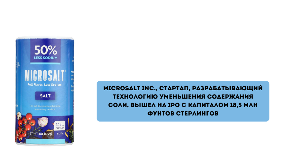 MicroSalt Inc., стартап, разрабатывающий технологию уменьшения содержания соли, вышел на IPO с капиталом 18,5 млн фунтов стерлингов