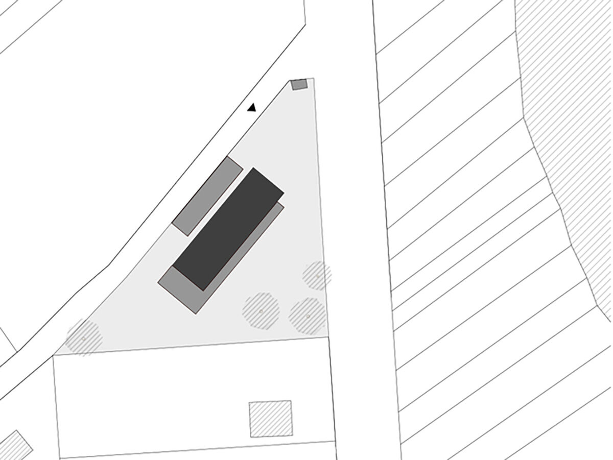 Перед австрийской компанией «Bogenfeld Architektur» стояла непростая задача – разработать проект загородного дома общей площадью 122 м2 на небольшом участке треугольной формы. К тому же на этом участке необходимо было разместить гараж для автомобиля заказчиков. Участок расположен возле озера Аттерзее в курортном районе Австрии. Необходимо было обеспечить хороший обзор из окон дома на красивый вид озера и прилегающих окрестностей. Авторы проекта по согласованию с заказчиками выбрали двухэтажный вариант дома. Место для строительства дома выбрали на самой высокой части участка, прилегающей к улице коттеджного поселка. Дому в плане придали вытянутую форму, чтобы оставить на участке место для небольшого сада. Гараж расположили между домом и улицей, чтобы между стеной дома и улицей было некоторое расстояние. Большую часть первого этажа занимает кухня-гостиная с выходом на террасу и на участок. Кроме кухни-гостиной на первом этаже расположен санузел с подсобными помещениями. На втором этаже н