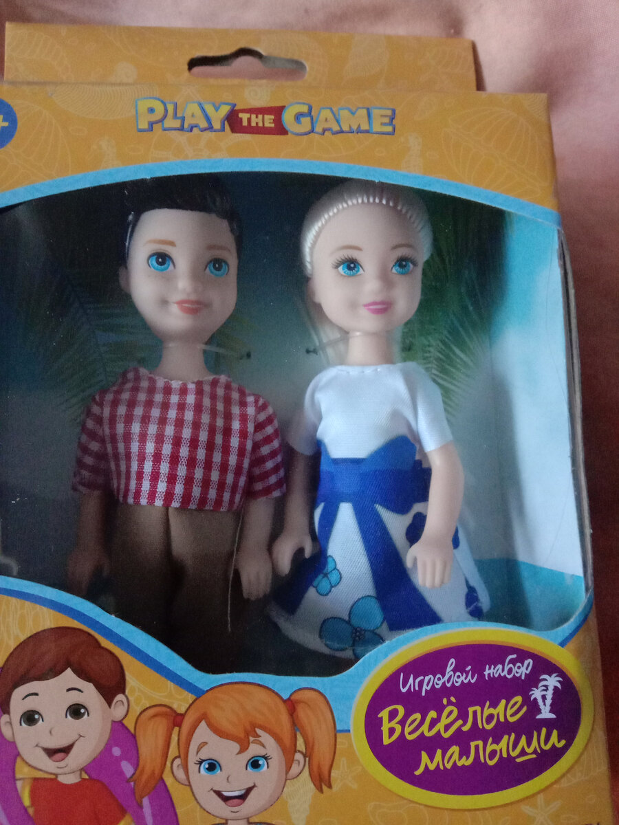Мальчик темненький, глаза тоже голубые. Моська с веснушками. Его наряд выглядит хуже. Торчат нитки , и липучка криво пришита.