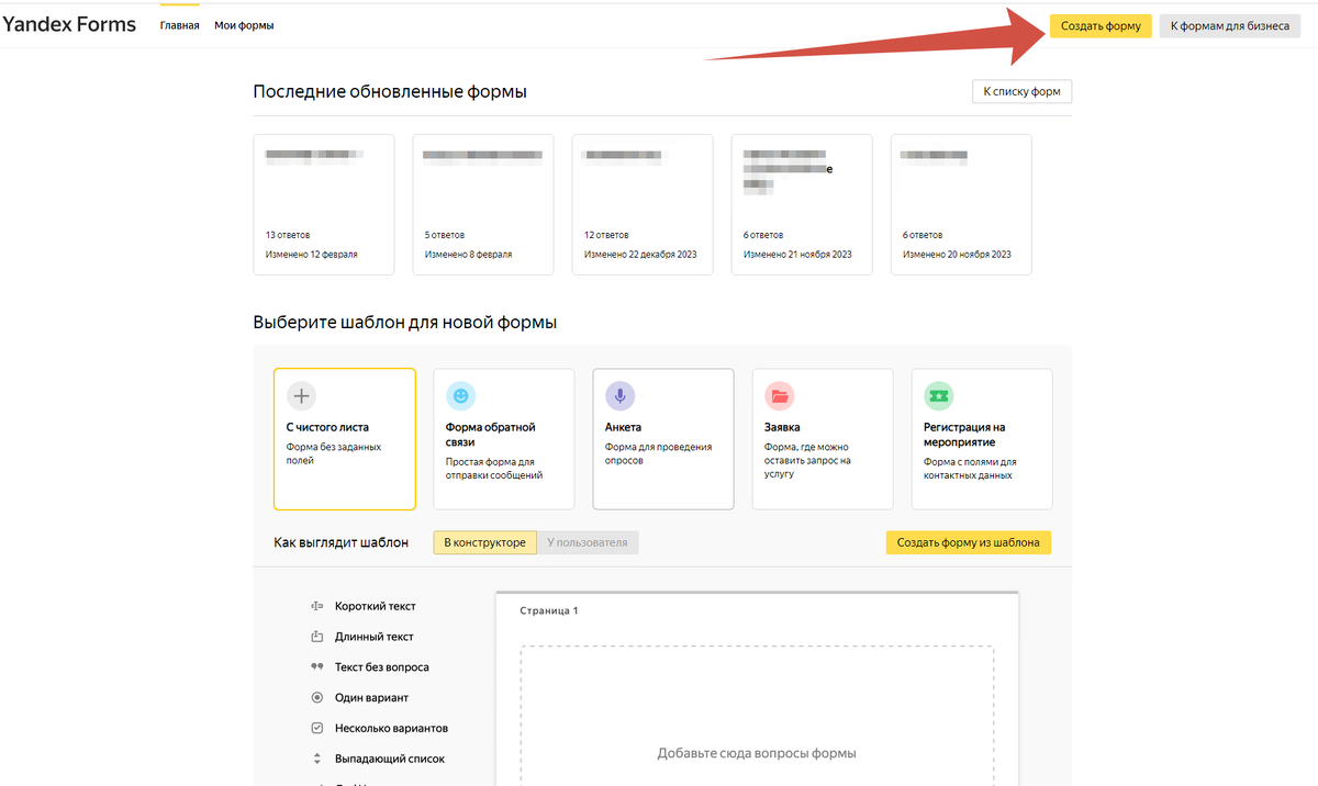 1. Переходим на сайт по этой ссылке: forms.yandex.ru.