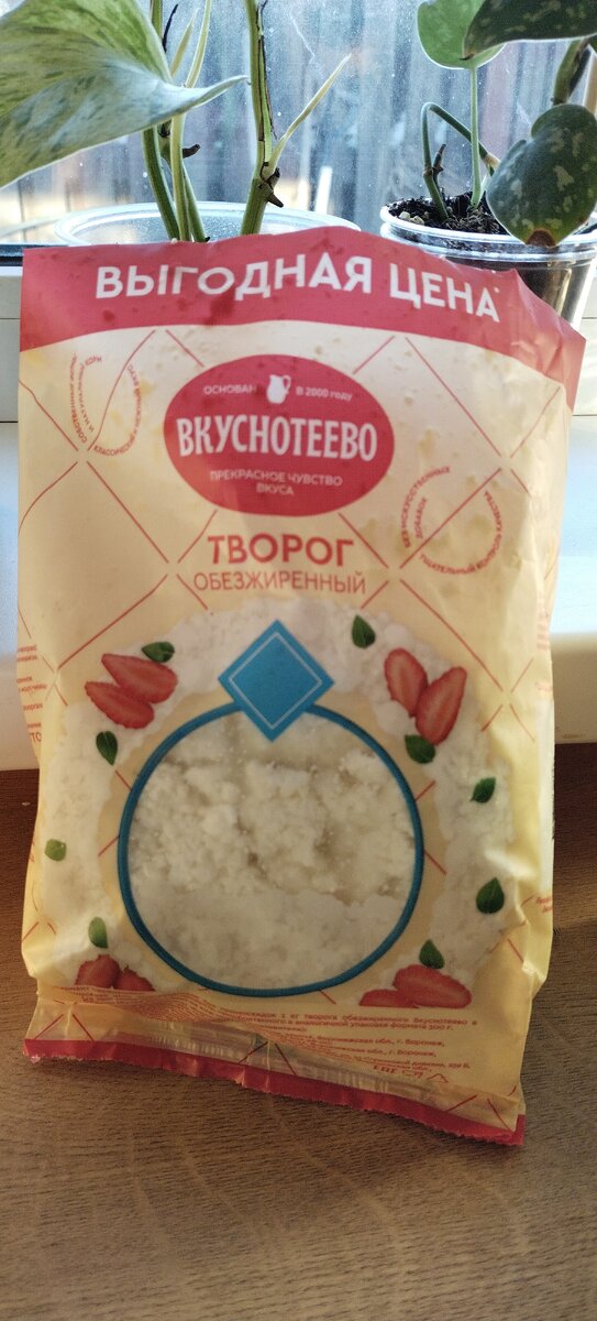 Как часто цена на ценнике отличается от фактической на кассе?! Проверяете ли вы каждый товар после оплаты? Тратите ли на это время или доверяете магазину? Я уже давным давно не доверяю. 🤷♀️ В самом ближнем магазине ещё ни разу не купила продукты, без возврата разницы! Ни одного раза!! Сегодня речь не о Магните. О другом очень крупном магазине, в который я устроилась работать будучи на 5 месяце беременности.)) Супруг собирался в очередную недельную командировку. Делал текущие дела. И я между делом, попросила его купить необходимое на время его отсутствия. В списке был и творог! Я худею и стараюсь есть обезжиренный. А жир добавляю сметаной. Но сейчас не об этом. Всё по списку было привезено, вместе с чеком. Творог муж купил, двух производителей. Вот этот стал героем моей сегодняшней статьи.🤭Особенно меня умиляет надпись, "Выгодная цена"!! Пипец, если это выгодная, то я даже и не знаю.. К слову, такой творог, я никогда не покупаю. В своём любимом магазине беру самый дешёвый под марко