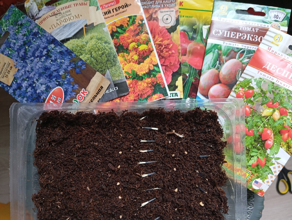 Сезон огородника открыт ). Первые посевы. Посеяла цветы и томаты и горошек и фасоль!