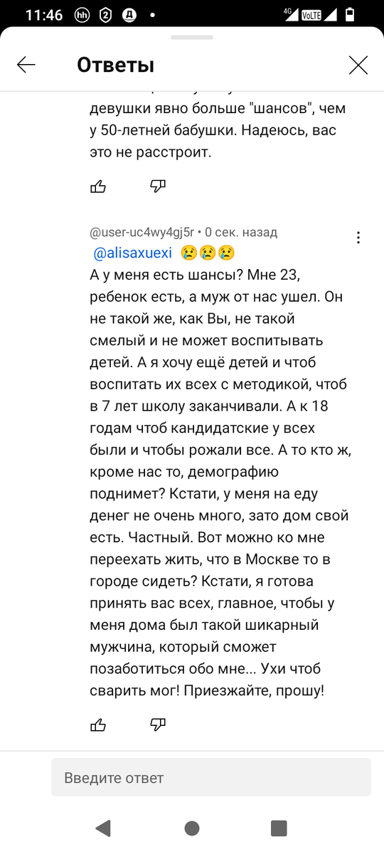 На этот комментарий он, кажется, ответил. Будет ли дискутировать дальше, вот в чем вопрос? Нет, ему, видать, льстит, но он не понимает, где подвох. Хотя и думает об этом. Но продолжит ли?