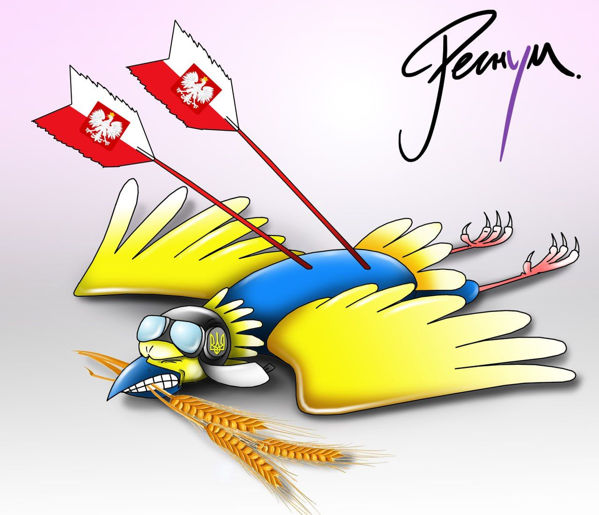 Я понимаю, что сейчас это звучит довольно безумно, однако факт остается фактом - сейчас, в текущий момент наибольшую пользу для России из всех европейских народов приносят именно поляки. Да-да, те самые поляки, которые столь много сделали в 2022-м году, чтобы мы проиграли - теперь они же делают все для того, чтобы мы выиграли. На днях я уже писал, как польские фермеры останавливали небратские фуры, рассыпали по дороге зерно, чем привели их в неописуемое возмущение. Как оказалось, на этом они не остановились. Вчера они проникли на другие инфраструктурные объекты, в том числе на товарные станции железной дороги и пункты перевалки. Там польские фермеры занялись тем же, чем занимались до этого - начали рассыпать зерно, пуская под откос результат труда тысяч людей. На товарных станциях они также вскрыли вагоны, так же рассыпали зерно. К слову, обратите внимание на вагон - надписи на нем на русском языке: Более чем уверен, что вагон этот раньше принадлежал РЖД, и небратья просто сперли его