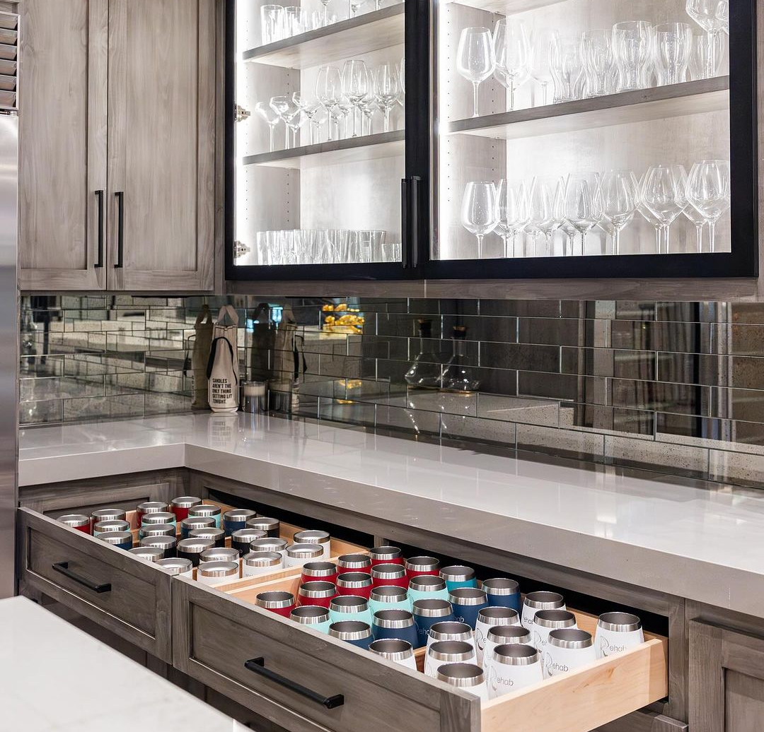 Организация стильного и современного домашнего бара может быть еще более легкой с правильной организацией ящиков и полок. Независимо от размера вашего помещения, вы можете создать настоящую атмосферу бара даже на кухне. Главное – храните барные принадлежности обособленно от остальных кухонных. Пусть это будет один ящик, но посвященный лишь барной тематике.