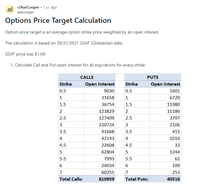 Website Wiki (после консультаций и беседы с автором) https://www.reddit.com/r/AxeCooper/comments/y13la7/website_wiki/ Инвестор , который ищет доказательства инсайдерской торговли, обычно начинает с рынка опционов, тесно связанного с фондовым рынком (рынком базового актива). На протяжении десятилетий скандалы связанные с инсайдерской торговлей показали, что опционы являются основным инструментом инсайдера. Причина очевидна: опционы предлагают гораздо большее плечо за ту же сумму наличных, чем обычная торговля акциями или сырьем(базовым активом) . ЧТО ЭТО и КАК ЭТО работает? Мы рассчитываем цену на основе позиций спекулянтов в опционах и получаем цель по цене Цель по цене - средняя цена страйк взвешенная по количеству открытых опционных контрактов Инвесторы на рынке опционов в основном делятся на 2 неравные категории по объемам инвестиций согласно данных клиринговой палаты : 75 % средств инвестируют профессионалы и 25 % средств инвестируют физические лица. А в малоликвидных акциях мал