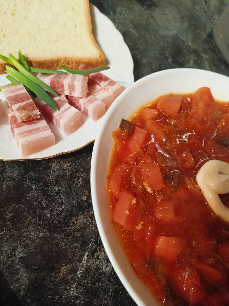 Сегодня воскресенье, а значит нужно, что-то приготовить на первые рабочие дни. Сейчас я готовлю на два- три дня сразу, что бы придя с работы не вставать ещё и у плиты. Готовлю сразу несколько блюд, по времени это занимает максимум два, два с половиной часа. Обязательно готовлю какой-нибудь суп. Супы мы едим не охотно, поэтому делаю не много, что бы хватило на один раз и взять с собой на работу. Небольшое исключение -это борщ, с салом ,зеленью ,чесноком можем поесть несколько раз Основное блюдо -это второе. Поэтому стараюсь готовить два варианта. Стараюсь включать в двухдневное меню какой-нибудь салат. Желательно максимально простой. Салат из моркови с чесноком тоже считается, а то мне один раз написали, что это салатом нельзя назвать. Я называю и считаю это салатом Теперь немного по меню на первые дни недели, у меня будет: 1.Борщ 2. Отбивные с картофельным пюре. Пюре уже сто лет не делала, сама соскучилась 3.Пелюстка (капуста маринованная со свеклой, сделаю сегодня, есть можно будет