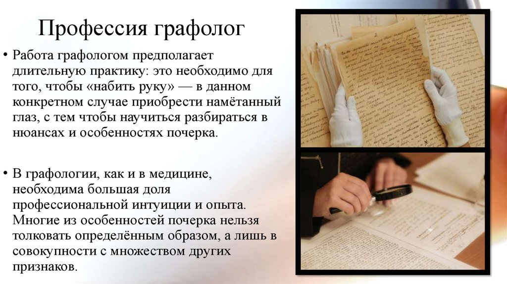 Графология — это наука, которая изучает связь между почерком человека и его личностными характеристиками. Графолог — это специалист, который анализирует почерк и делает выводы о характере, эмоциональном состоянии и других особенностях человека.