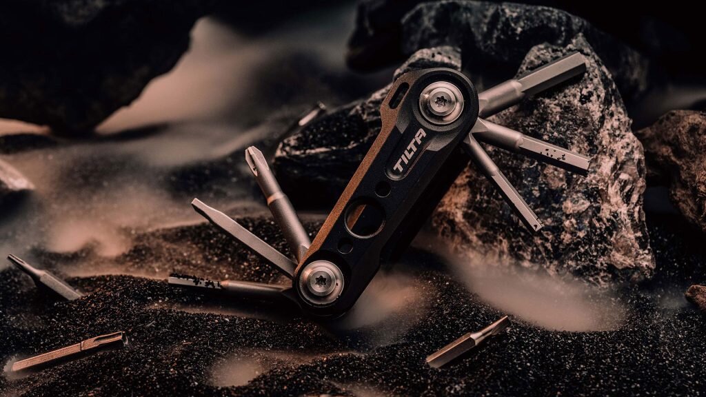 Компания Tilta представила компактный многофункциональный мини-набор инструментов для съемочной площадки – мультитул Tilta Mini Tool Kit стоимостью 25 долларов (2.3 тысячи рублей). Он имеет две точки крепления 1/4″-20 и одну 3/8″-16. Инструмент выпускается в пяти цветовых решениях: черный, серый, зеленый, розовый и титаново-серый. Многофункциональный инструмент Tilta предназначен для сборки съемочного оборудования (например, кинокамер с обвесом), и других задач, возникающих на съемочной площадке. Мультитул Tilta включает в себя сразу шесть инструментов: шестигранные ключи на 2.5/3/4 и 3/16, крест PH2 и одну плоскую отвертку. Фактически, это все, что нужно для сборки любой кинокамеры с любым обвесом. По бокам инструмента вы найдете одну резьбу 3/8″-16 и две точки крепления 1/4″-20 с установочными штифтами. Весит мультитул Tilta 80 грамм и отличается компактным дизайном. К слову, похожий инструмент есть и у компании SmallRig (см. на изображении ниже). Вариант мультитула от SmallRig стоит
