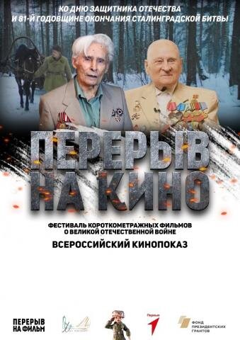 Организатором фестиваля военно-исторических фильмов «Перерыв на кино» организует Фонд «Мост поколений» с 5 февраля по 3 марта 2024 года. В кинотеатрах, вузах, школах и домах молодёжи городов страны – не менее 1000 населенных пунктов – транслируются две художественные короткометражные ленты из цикла «Улицы героев», посвящённых подвигам героев Советского союза Дмитрия Овчаренко и Марии Байды (режиссёр - Алексей Китайцев), пластилиновый мультфильм «Степан Сталинградович» и две документальные работы о ветеранах Великой Отечественной войны – «На страже Северного флота», рассказывающая о Владиславе Георгиевиче Лазареве («Перерыв на фильм»), и «Победа одна на всех», повествующая о Родионе Степановиче Шутенко.