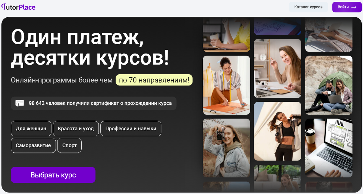 TutorPlace — интерактивная образовательная платформа, обеспечивающая пользователям возможность проходить обучающие курсы по различным направлениям в режиме онлайн. Сервис нацелен на оперативное достижение результата студентами, доступ к нему предоставляется по подписке. Преимущества и недостатки платформы Площадка удобна тем, что доступ к 90% имеющихся здесь курсов предоставляется в рамках единой подписки. После регистрации клиент может в течение 7 дней пользоваться ресурсом всего за 1 руб., в дальнейшем цена увеличивается до 299 руб. в неделю. Плюсы TutorPlace: Первые результаты на TutorPlace можно получить всего за месяц. Сторонним экспертам разрешается размещать на платформе авторские образовательные курсы и обеспечивать себе дополнительный заработок в виде процента с продаж. Проект нельзя назвать идеальным, здесь есть свои минусы. Так, обещанная поддержка в режиме 24/7 нередко хромает, ответ от специалистов саппорта порой запаздывает на 1–2 часа. Официальный сайт подтормаживает, он