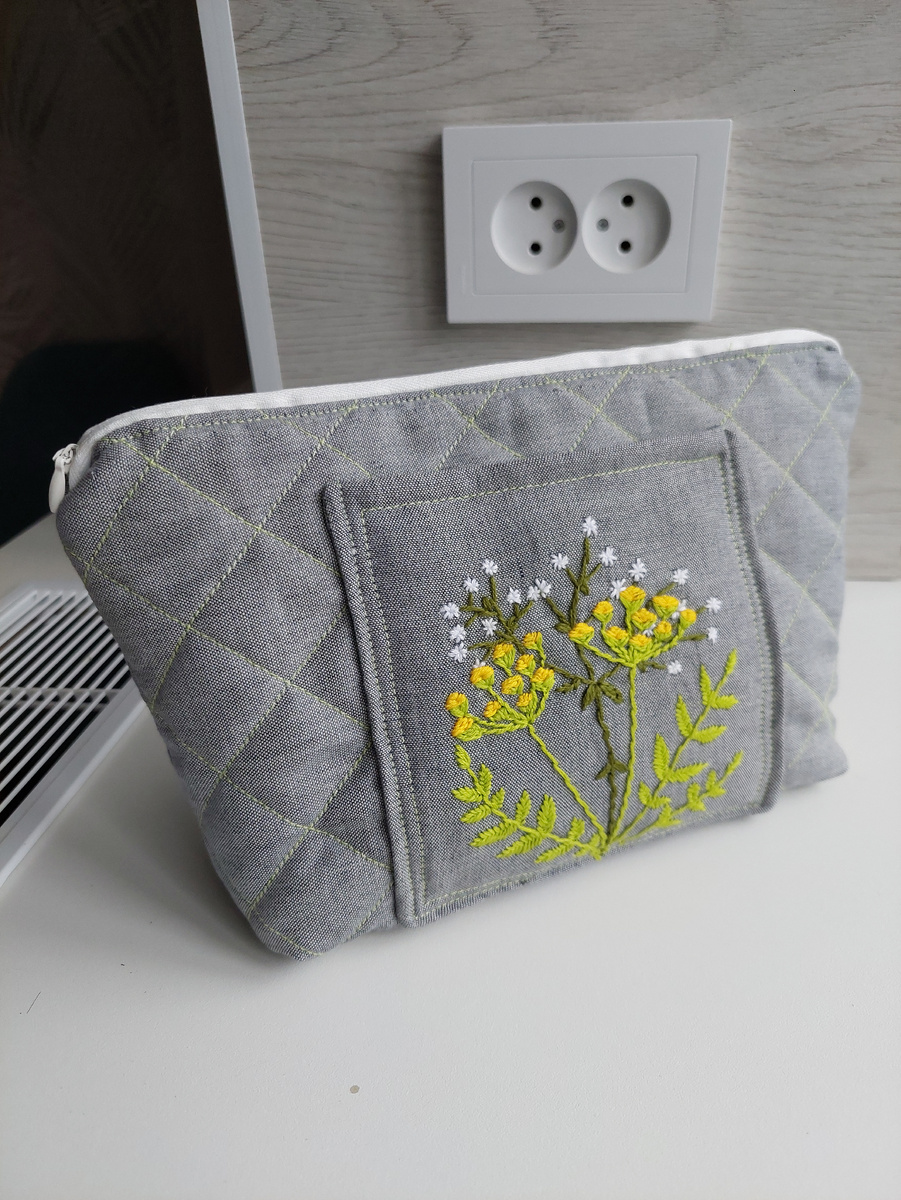 Вышиваю я с детства: то увлекаюсь другим рукоделием,то вновь возвращаюсь к крестикам. Раньше я всегда оформляла свои работы в рамку. Недавно при переезде перебирала всю вышивку. В итоге и рамки пожелтели, и картины как-будто грязные,вешать на стену такие уже не хочется. Пришла к выводу,что хранение в раме не обеспечит сохранность на года. Недавно вновь начала вышивать. На этот раз осваиваю гладь,а между делом примитивные милые картинки крестом. Желание любоваться своей работой не только на стене,но и в повседневной жизни натолкнуло меня на мысль применения вышивки в шитье. Нашла на просторах интернета выкройку простейшей косметички, и вот что из этого получилось. Теперь вдвойне приятно пользоваться такой вещью. На этой косметичке я не остановилась.