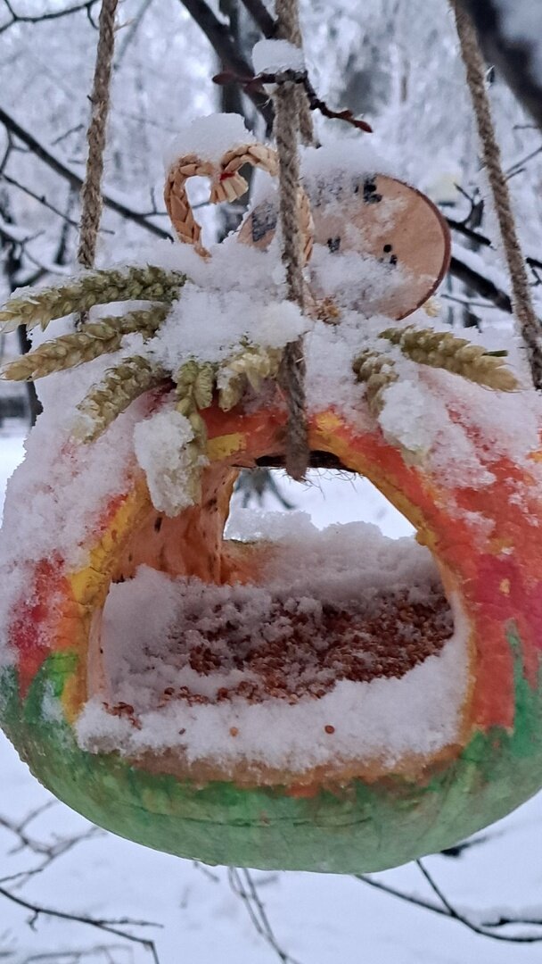 Кормушка для птиц из тыквы