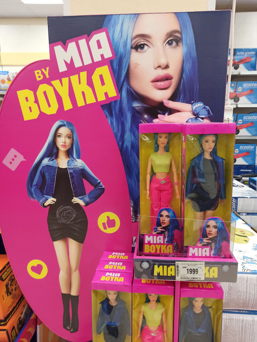 Увидела я на сайтее Детского мира, что есть в продаже Барби серии Extra fly. И подумала, может, и а магазин завезли. Захожу, но сначала вижу что-то совсем незнакомое, но яркое🤔😊 Конечно, меня помантдо сразу к это к стенду. Что за кукла? Потом я вспомнила, что видела эту певицу по телевизору пару раз. Удивительно, что при этом решили сделать её портретную куклу, но я всегда за разнообразие, а тут ещё и шарнирная красотка😊 Сразу вспомнился сериал "Друзья", как они обсуждали портретную куклу Джоуи (вот кого бы я точно купила😍). Насчёт Миа Бойка не уверена, что приобрету, но с удовольствием бы изучила. Напоминает она мне новую серию Defa Lucy и "уточек", но вполне симпатичная. И сразу хочется переодеть😃 Extra fly я в магазине не нашла. Но зато полюбовалась на вот такую Барби. Как-то раньше её замечала, а она привлекательная😊 Посмотрела ещё на Софий. Всё также нравится эта пёстрая, хотя и местами одноликая толпа. Издали вроде одинаковые, только платья различаются. Ничего подобного.