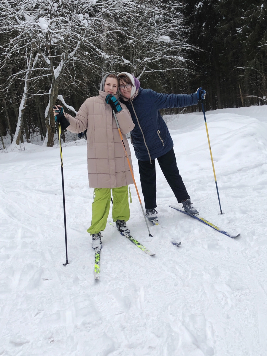Будучи в отпуске успела съездить к маме в гости, у нее природа, свежий воздух да и вообще красота! В первый же день как приехала мне захотелось прокатиться на лыжах. Честно я со школьных времен их не одевала😅. Мама подхватила эту идею и мы вместе с детками выехали в лес. Не передать словами как здорово ехать когда кругом ели и пушистый снежок ☺️ ловишь какое то уединение с природой. Лисёна ( мамина собака ) тоже ходила с нами, бегала быстро что бы не потерять и следила что бы никто не отстал. После меня пробило на кулинарные эксперименты! За 24 года я ни разу не готовила сырники😮 так как не ем особо творог. И тут по рецепту мамы я с сестрой Ириной начала лепить их. После мы еще и чебуреков наляпали😅. Получилось всё очень вкусно и сытно. На следующий день я стала собираться потихоньку домой и попросила маму меня подвезти на вечерний автобус. выезжать мы стали примерно в 17.20 вечера но не учли что всю ночь валил снег ❄️ а трактор еще не проезжал… Проехав с великим трудом кило