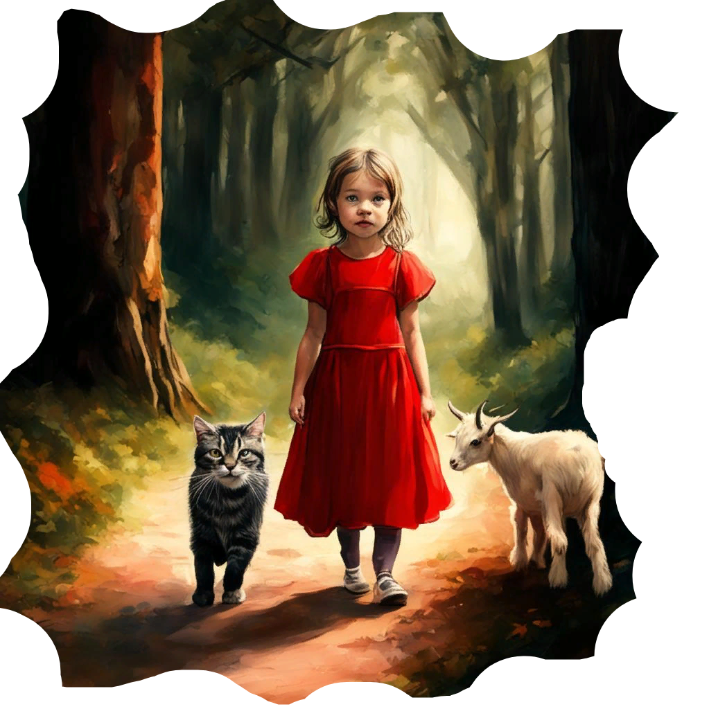 Жила-была маленькая девочка по имени Анна, которая очень любила гулять по лесам и лугам со своим верным другом - козленком по имени Барашек. Каждый день они весело играли в прекрасном мире природы, разгадывали загадки цветов и беседовали с птицами. Но однажды, когда они отправились на прогулку, забрели далеко в лес и заблудились... Заблудившись в лесу, Анна и Барашек оказались в незнакомой местности. Девочка начала волноваться, но не потеряла надежды. Вместе они шли по лесной тропе, и вдруг услышали печальное, громкое мяуканье. Следуя за звуком, они увидели серого котика, который сидел высоко на дереве. Анна была смелой девочкой и решилась залезть на высокое дерево, хоть и не много боялась, но в конце концов она спасла котика и тот благодарно мурлыкал им.