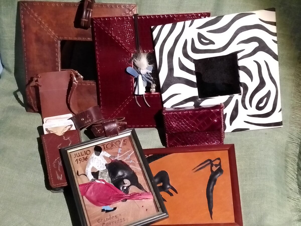 Ну и на сладкое - мелкие кусочки кожи как нельзя лучше подходят для создания кожаных картин.