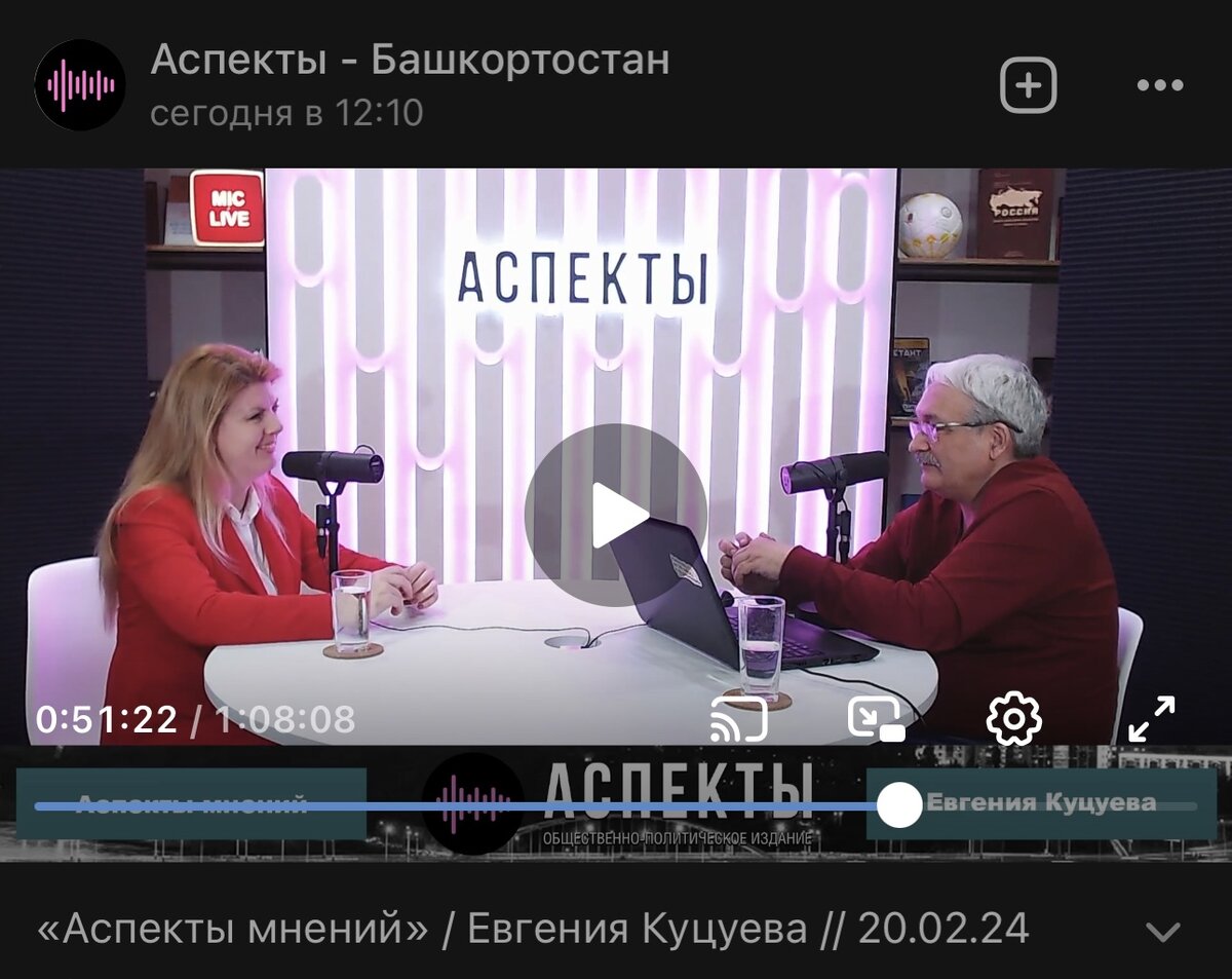 Первое интервью было в эфире "Аспектов", мы проговорили с Разифом Абдуллиным больше часа.