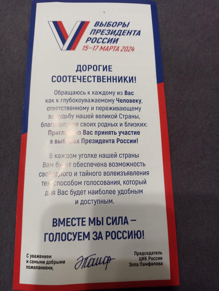 Пришли сегодня женщины и спрашивали пойду ли я на выборы. Не спросили за кого буду голосовать. Пойдем изъявил свою гражданскую позицию. Я, дочь пойдет. И муж и брат наверное придет. Зять на своём участке пойдет. Хотя результаты мы все прекрасно знаем. Кандидатов в президенты вы знаете. Агитировать не буду. Один старый, один мудрый, один мутный, один юный Выборы у меня сразу вызывает ассоциации с вкусными булками и столовой. Ходила с бабушкой на выборы показывала где мне ставить крестик или галочку. Заходили в школьную столовую. Мы с подружкой тоже берем детей на выборы и покупаем кучу булок. Не где таких вкусных нет. Вот интересно 🤔💭 . Если я не буду голосовать за Путина. Я предатель? И не патриот? Одноклассника сына забирает дедушка и бабушка. Сказали, что мы предатели и не любим Россию.