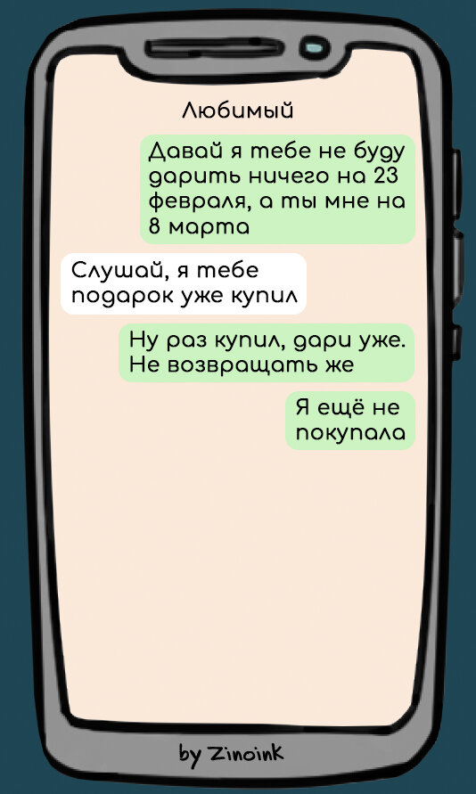 Чтобы не расстроить партнёра на 23 февраля, лучше напрямую спросить мужчину, что бы он хотел получить в подарок. Правда героиня следующей переписки могла таким и не интересоваться, все равно бы не прогадала).