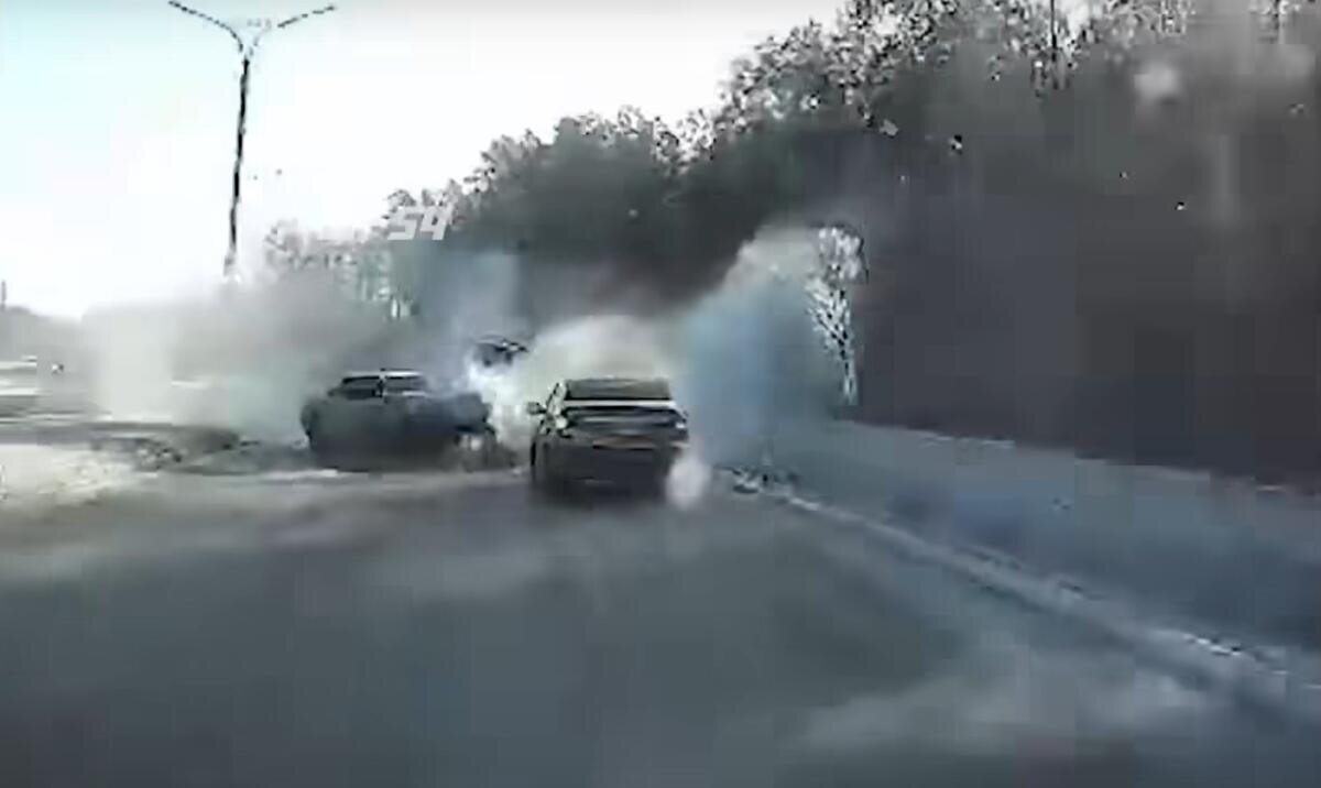 Очевидцы рассказали, что водитель внедорожника не справился с управлением и вылетел на "встречку". После этого авто влетело в три машины.