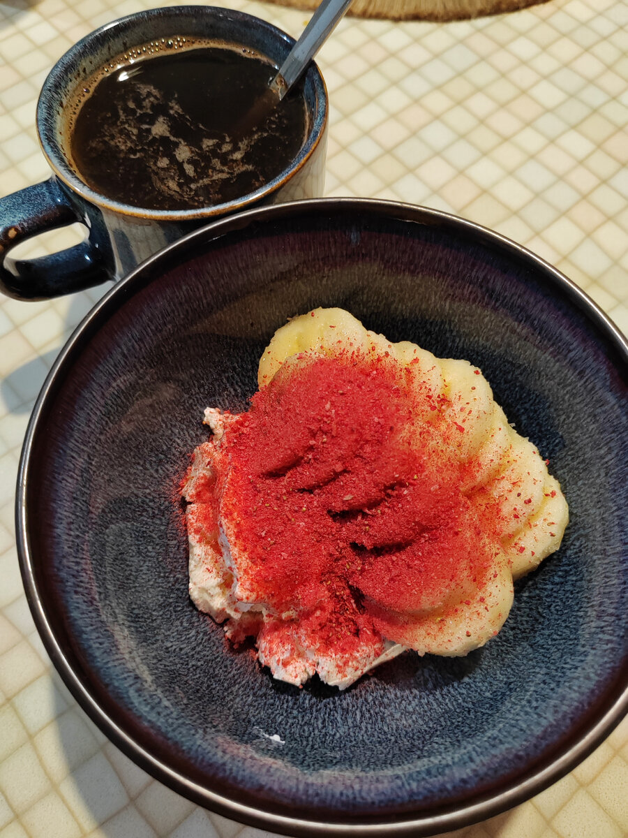 Бутерброд с творожным сыром, рыбой и огурцом, яйцо с соусом Терияки