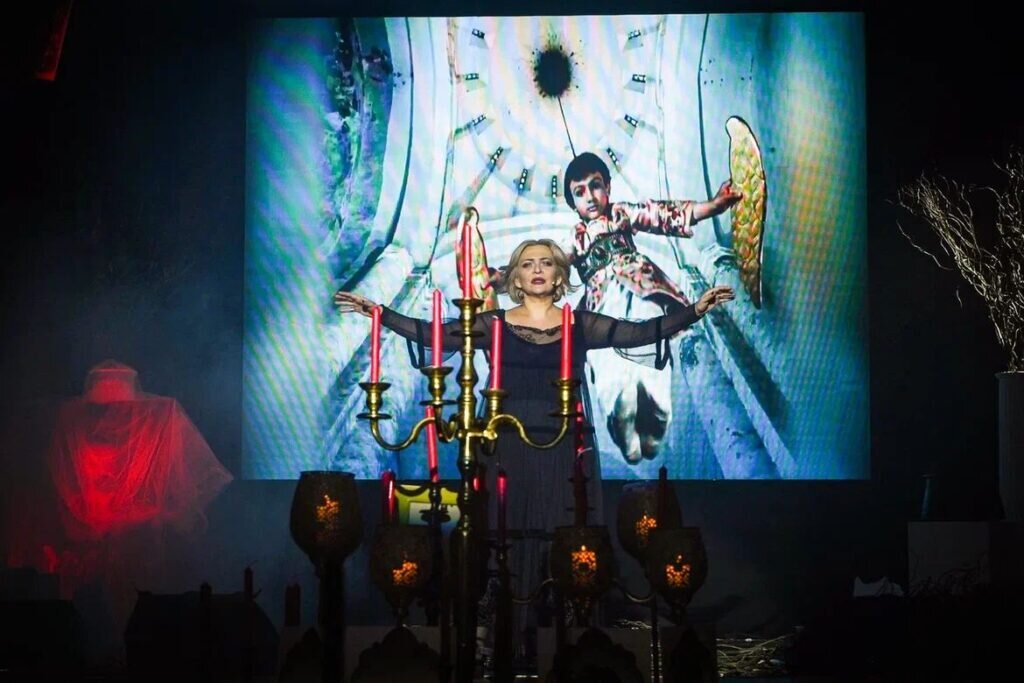 То, что пережили зрители в этот вечер трудно назвать спектаклем. Это был поистине исповедальный молебен Параджанову, созданный основателем театра Владимиром Габбе, и проникновенно сыгранный Луизой Габбе В колонном зале Центрального Дома Российской Армии состоялось торжественное открытие Года Параджанова в Москве. Московский театр имени Сергея Параджанова к 100-летию великого Мастера представил премьеру постановки «Я миру отомщу любовью» Заслуженная артистка России Луиза Габбе воплотила в своей работе удивительную степень духовной жертвенности через трагические параллели судьбы Мастера. Переполненный зал, замерев от восторга, со слезами на глазах восхищался духовной глубиной и изяществом мастерства актрисы. «Настоящее искусство рождается в кострах надежды»- эта фраза, так точно характеризует философию ее пройденного пути и служения театру вопреки всему. И вот, на сцене, воскрешая потусторонние сакральные миры Параджанова, актриса словно та самая легендарная саламандра не сгорает в кос