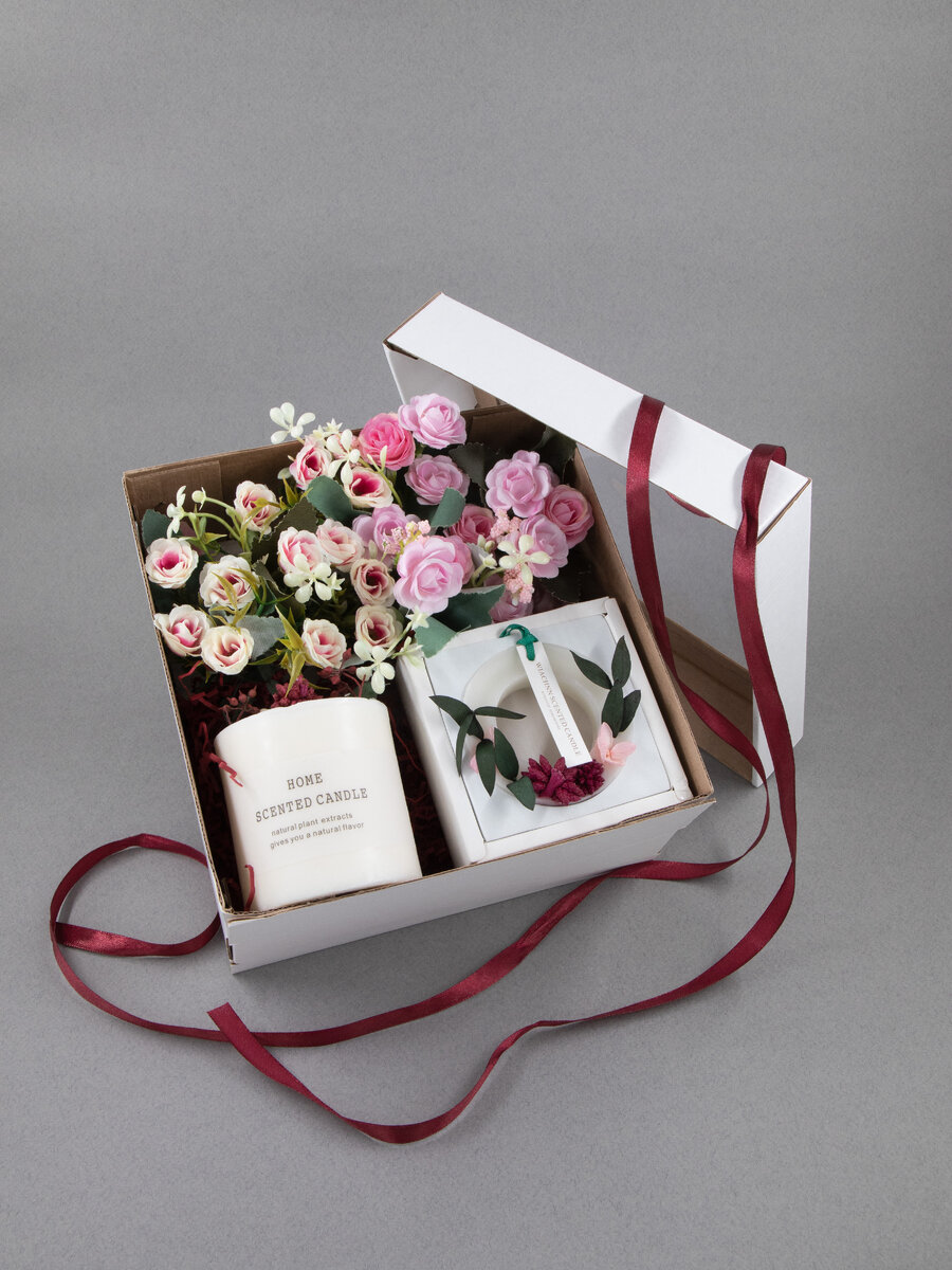 В состав подарочного набора входят: аромасаше, аромасвеча, цветы (розы), все это-ручная работа. В этом подарочном наборе есть все, что нужно чтобы порадовать ваших близких, дополн