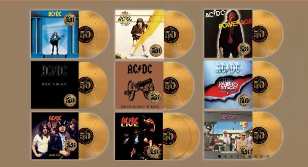 В честь 50-летнего юбилея AC/DC как величайшей рок-группы мира, объявляют, что каталог группы будет доступен в виде виниловых пластинок золотого цвета.
