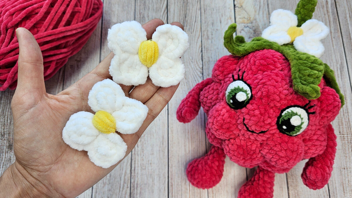 Начинаем вязание БЕЛОЙ пряжей с цепочки из 9 вп. Замыкаем цепочку в круг с помощью 1 сс, делаем 1 вп, и далее вяжем в круг: (1 сбн, 4 вп, 3 сс2н с одной вершиной, 4 вп)* повторяем 4 раза, 1 сс в первую петлю ряда. Завершаем вязание 1 вп, пряжу обрезаем и петлю затягиваем. Кончики нитей можно завязать в узелок между собой, обмотав вокруг середины бантика. Далее наматываем ЖЕЛТУЮ пряжу около 10 раз (при этом оставьте вначале свободный хвостик). Завязываем между собой оба хвостика пряжи на изнаночной стороне и пришиваем к игрушке. Сама Малинка связана по моему новому Мастер-классу "Ягода Малинка". Всю информацию о нем вы можете найти на моих площадках: Сайт - https://goozelltoys.ru/ Инстаграм - https://www.instagram.com/goozell_toys/ Вконтакте - https://vk.com/goozell_toys И мой YouTube канал - https://www.youtube.com/@GoozellToys