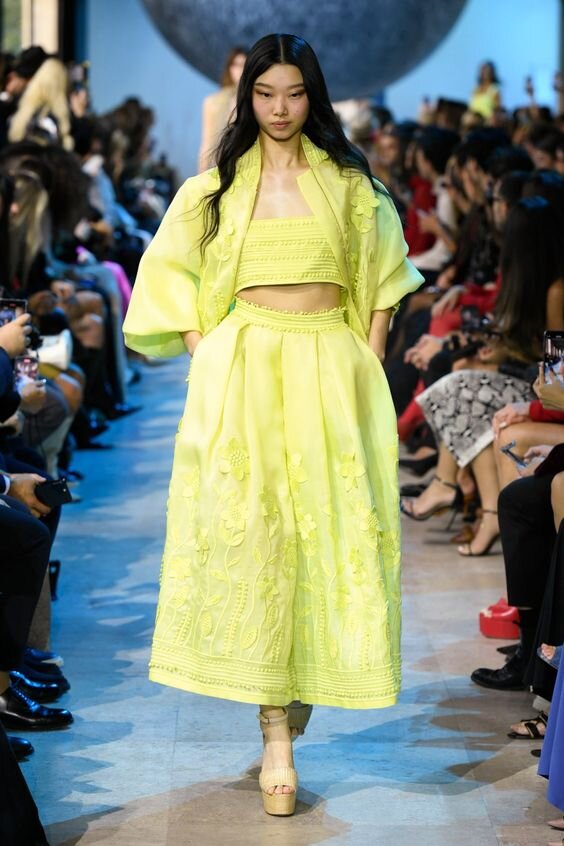 Красный цвет – был номер один в прошлом сезоне и в наступившем тоже старается сохранить свои модные позиции, но не стоит забывать и о других цветах. Энергичный желтый оживит ваш гардероб к весне! С чем сочетать этот солнечный цвет? Попробуем составить рейтинг самых актуальных цветовых сочетаний с желтым. На улице пока еще серо и грустно, но скоро весна! Носите яркие, насыщенные цвета, они сделают зиму чрезвычайно красочной, помогут создать хорошее настроение и быстрее дождаться весну! Желтый в основном ассоциируется с солнцем, праздниками и энергией – он вызывает только положительные ассоциации. Одежда и аксессуары этого цвета разнообразят ваш гардероб и улучшат настроение в зимние хмурые дни. Не нужно бояться динамичных оттенков! Желтый цвет в одежде В сезоне осень-зима 2024 желтый цвет появился в коллекциях Miu Miu, Bottega Veneta и Versace. С чем сочетать этот цвет? Носить однотонный Total Look можно, но это довольно рискованно. К сожалению, одноцветный комплект может выглядеть ч