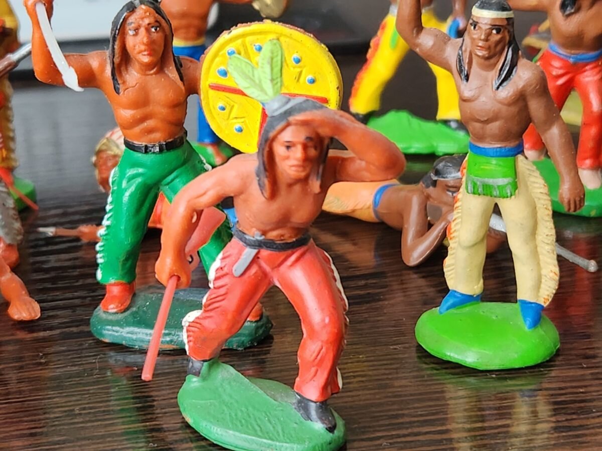 У нынешних детей сегодня имеется огромный выбор игрушек. Современная индустрия развлечений может удовлетворить любой спрос, начиная от обычной мягкой игрушки, и заканчивая современной электроникой. А вот у детей Советского Союза подобного разнообразия не было. У девочек куклы, а у мальчишек машинки и солдатики … У многих пацанов обязательно была своя армия солдатиков, это и рыцари, и буденновцы. Но все же самыми “элитными” бойцами у многих были индейцы из ГДР! Это такие небольшие резиновые фигурки, высотой около 7- 8 см. Те мальчишки, у кого были в коллекции фигурки индейцев из ГДР считался настоящим везунчиком. Им завидовал весь двор. Купить этих игрушечных солдатиков в СССР было практически невозможно. В основном их привозили военные, которые тогда служили на территории ГДР, и туристы. Некоторые школьники переписывались со своими немецкими коллегами, и те иногда им присылали в подарок индейцев. В принципе гдровского индейца можно было выменять у пацанов, которым они были не нужны, но