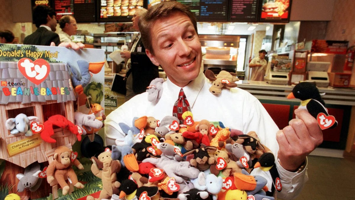 В 1993 году американец Тай Уорнер представил уникальную серию игрушек — они были набиты маленькими шариками, поэтому их можно было двигать и придавать им любые позы. Несмотря на эту интересную особенность, детям они почему-то не понравились — продажи были очень низкими, так что магазины отказывались брать их на реализацию. Тогда Уорнер придумал хитрую комбинацию — он свернул производство некоторых серий, а отдельных персонажей вообще «отправил на пенсию». Вскоре игрушки Beanie Babies стали культурным феноменом — люди обсуждали их на работе и в интернете, хвастались перед друзьями «редкими образцами» и тратили на них огромные деньги. Это оказалось очень выгодным вложением — цены на медвежат росли, так что их доходность порой опережала фондовый рынок. Как вы уже догадались, ажиотаж вокруг Beanie Babies был обыкновенным пузырем — через несколько лет цена на них рухнула, и миллионы «инвесторов» остались без денег. Так как же этот плюшевый пузырь вообще стал возможен? 🔸 Дефицит. Задумка Та