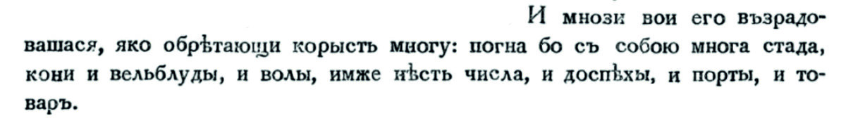 Устроив дела, возвращаются в богохранимый град Москву. И вот тут автор вспоминает верблюдов и товары, коим, всё-таки, воины рады.